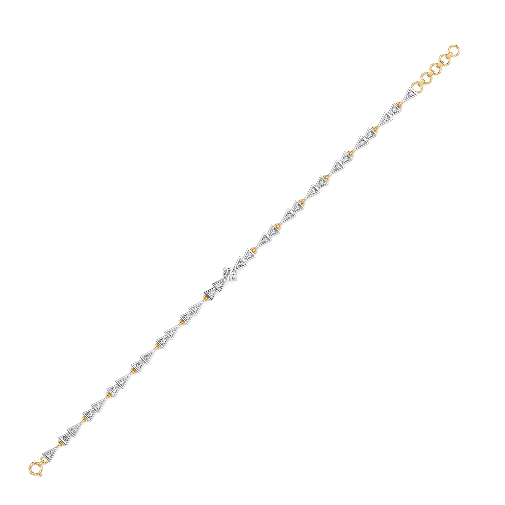 The Majestic Arc Solitaire Bracelet holds the fluidity of a bracelet, featuring a 0.20 ct lab-grown solitaire diamond at its center. The surface prong-setting enhances the brilliance of each diamond, allowing it to shine with timeless elegance. Inspired by the grand, sweeping curves of architectural arches, this piece speaks to strength, grace, and lasting beauty.